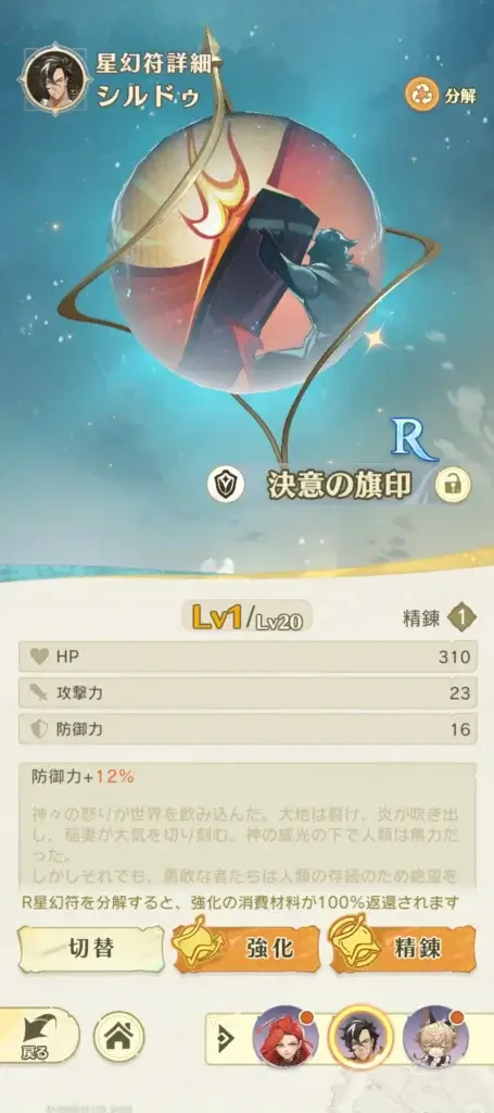 星幻符を強化することでキャラが強化されます。HP、攻撃力、防御力を上げることができます。