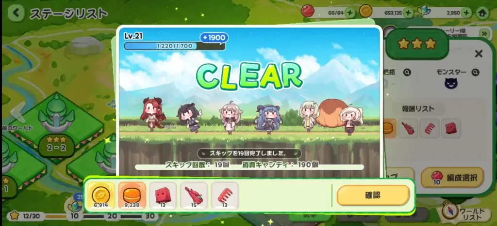進軍をスキップクリアすることで効率よく装備を入手することができます。進軍のスキップはクリアしたステージしかできないので注意が必要です。