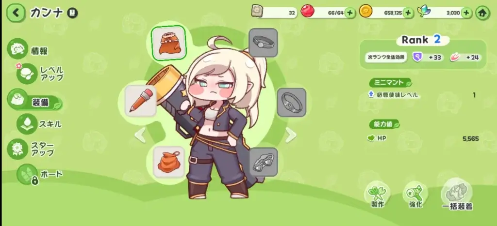 使徒に装備を全て装備するとランクを上げることができます。ランクを上げることで使徒の全体のステータスが上がり、戦力が大きく上がります。