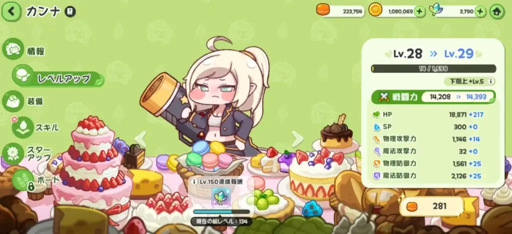 モカロンを使用して使徒のレベルを上げましょう。使徒の一覧からレベルを上げた石とを選びます。