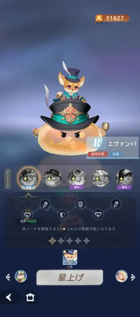 キャラ(冒険者)の星上げをすることで強化されます。星上げは凸要素であり、素材の入手難易度は高いですが、粉うことで戦闘力を大きく伸ばせます。