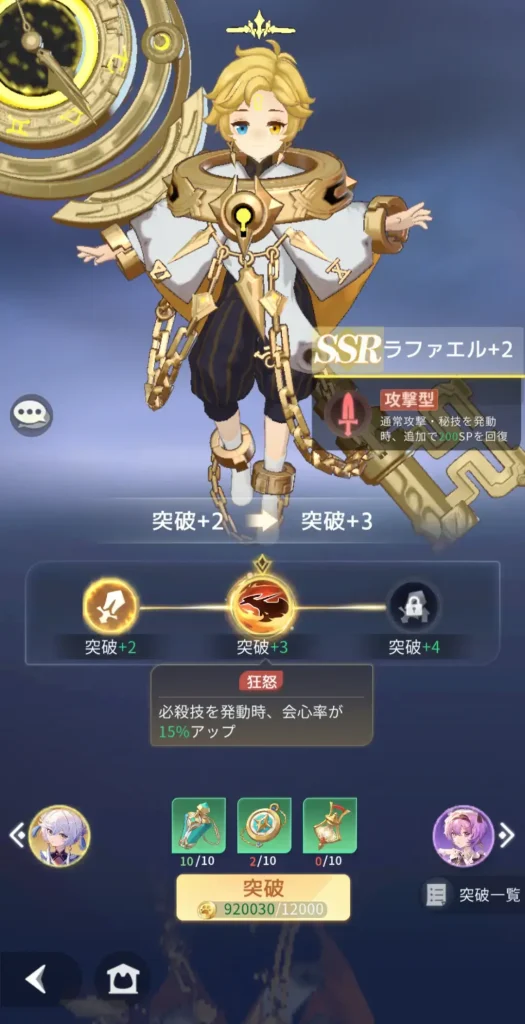 突破素材は冒険者の突破に使用されます。突破を行うことで、冒険者の強化を行うことができます。