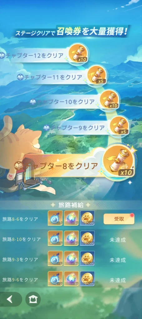 旅路補給で星辰ノ残り火を入手できます。旅路補給は旅路を特定のステージでクリアすることで、