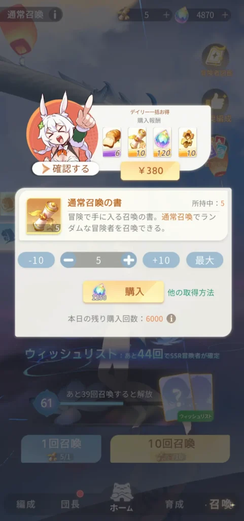 ダイヤと交換することで通常召喚の書を入手できます。ダイヤは、デイリーミッションや無料で受け取れる場合もあります。