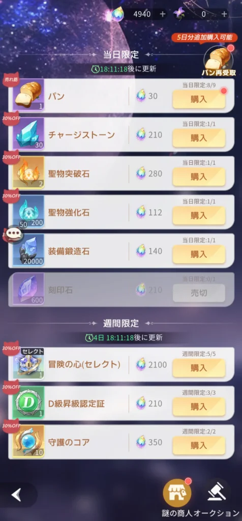 謎の商人でも刻印石を入手できます。通常だと刻印石はある詰まりにくいのでダイヤを使用して交換するのも良いでしょう。