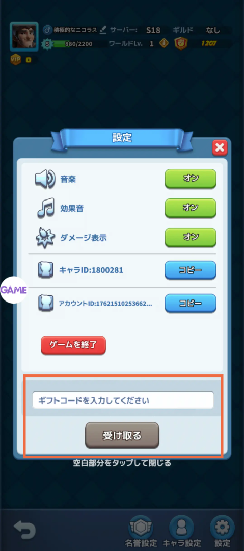 ギフトコードの入れ方