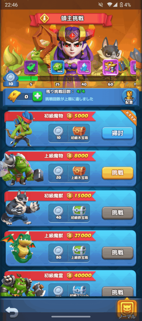 領主をクリアすることで英雄経験値を入手できます。また、クリアすることで宝箱を入手することができ、その中に英雄経験値が入っています。