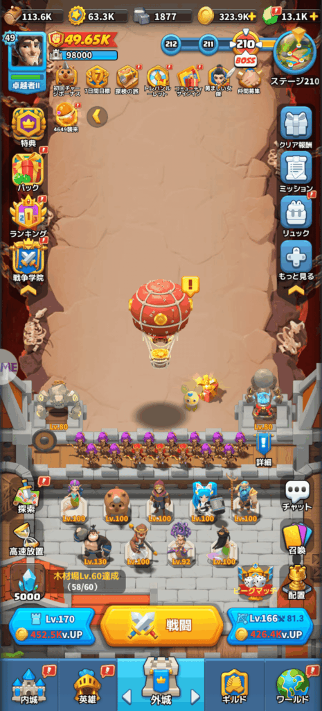 英雄を強化することで戦力を強化できます。英雄は直接ステージのクリアに大きく関係します。