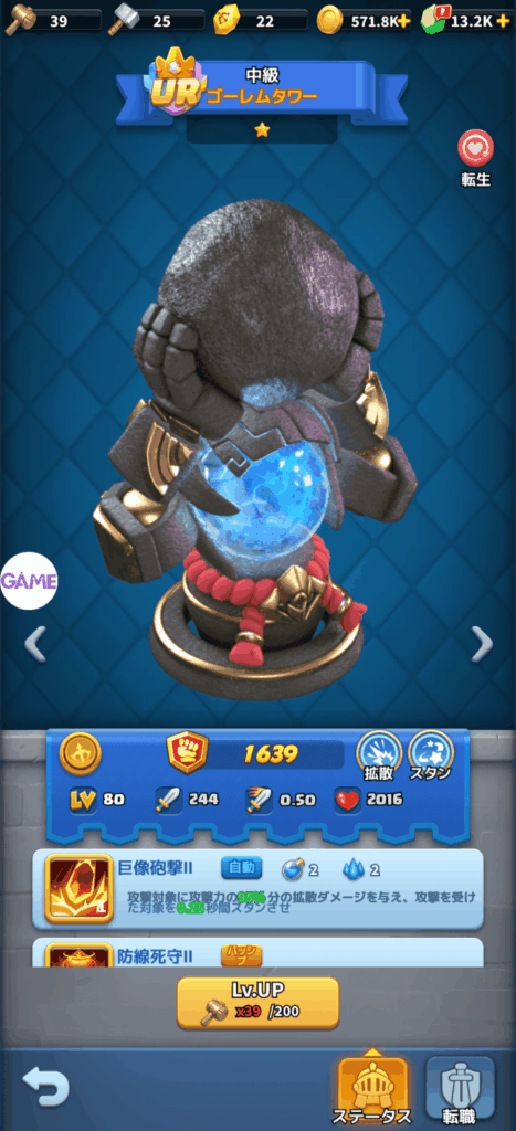 城壁を強化することで戦力を上げることができます。城壁はコインや初級建築士、中級建築士でレベルを上げることができます。