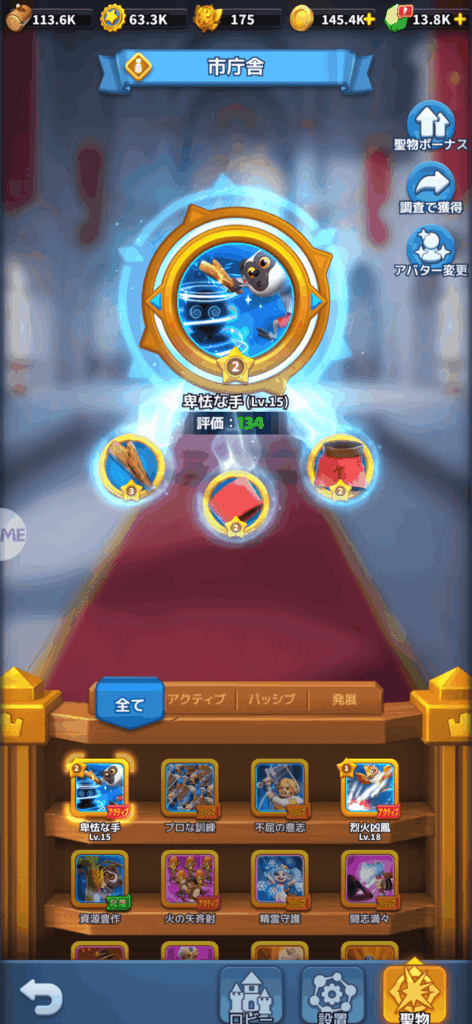 聖物の強化や設置を行うことで戦力が上がります。生物は強化することでさらに強くすることができます。