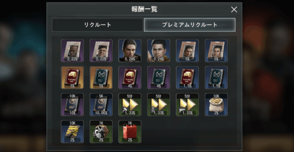 英雄リクルートでレジェンド英雄バトルスキルブックを入手できます。リクルートでもプレミアムリクルートでも入手できます。