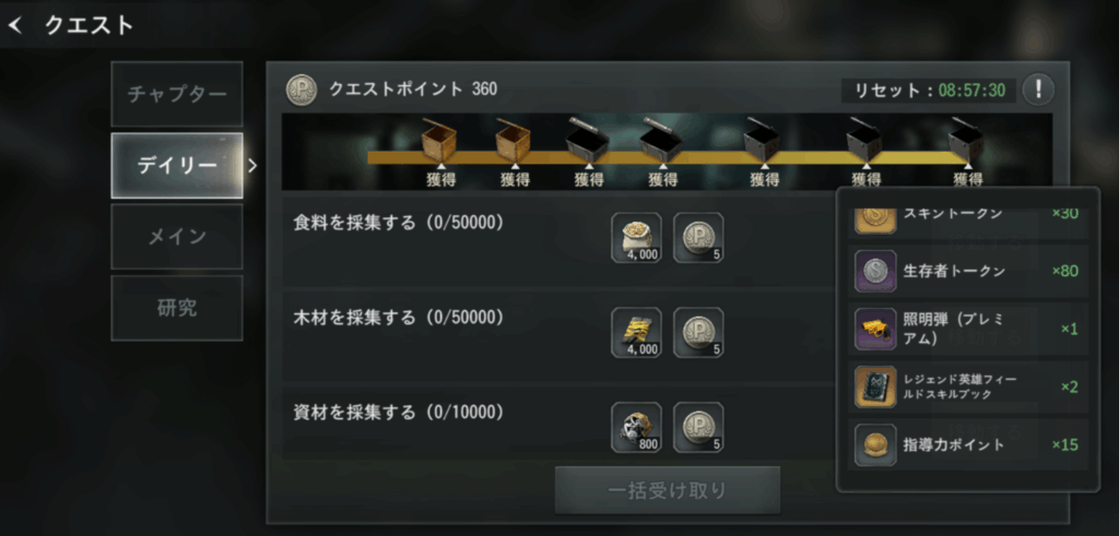 デイリークエストでレジェンド英雄バトルスキルブックを入手することができます。デイリークエストは毎日行うクエストです。デイリークエストでは最後まで毎日終了すれば、合計4つのレジェンド英雄バトルスキルブックを入手できます。