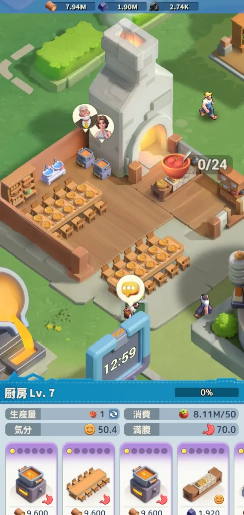 建物のレベルを上げることで食料を使用できます。建物のレベルを上げるほど必要な食料の量が増えます。
