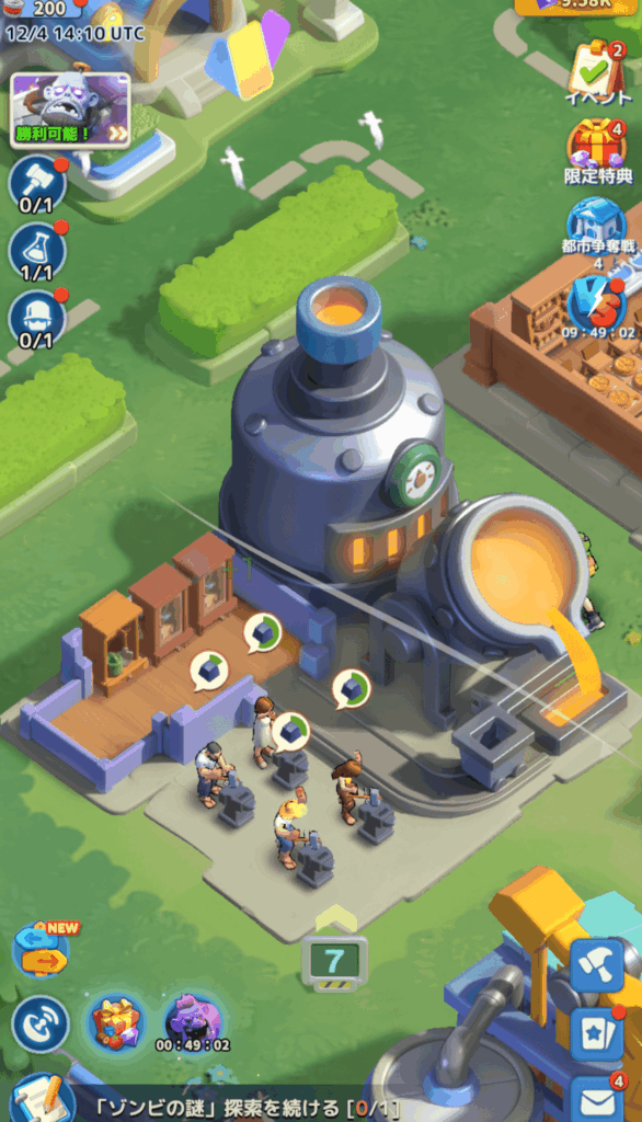 精錬所で金属を入手できます。精錬所はレベルを上げるだけ金属の入手量が増えます。