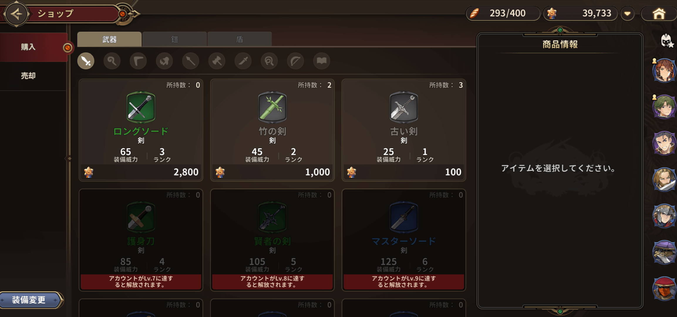 装備を購入する