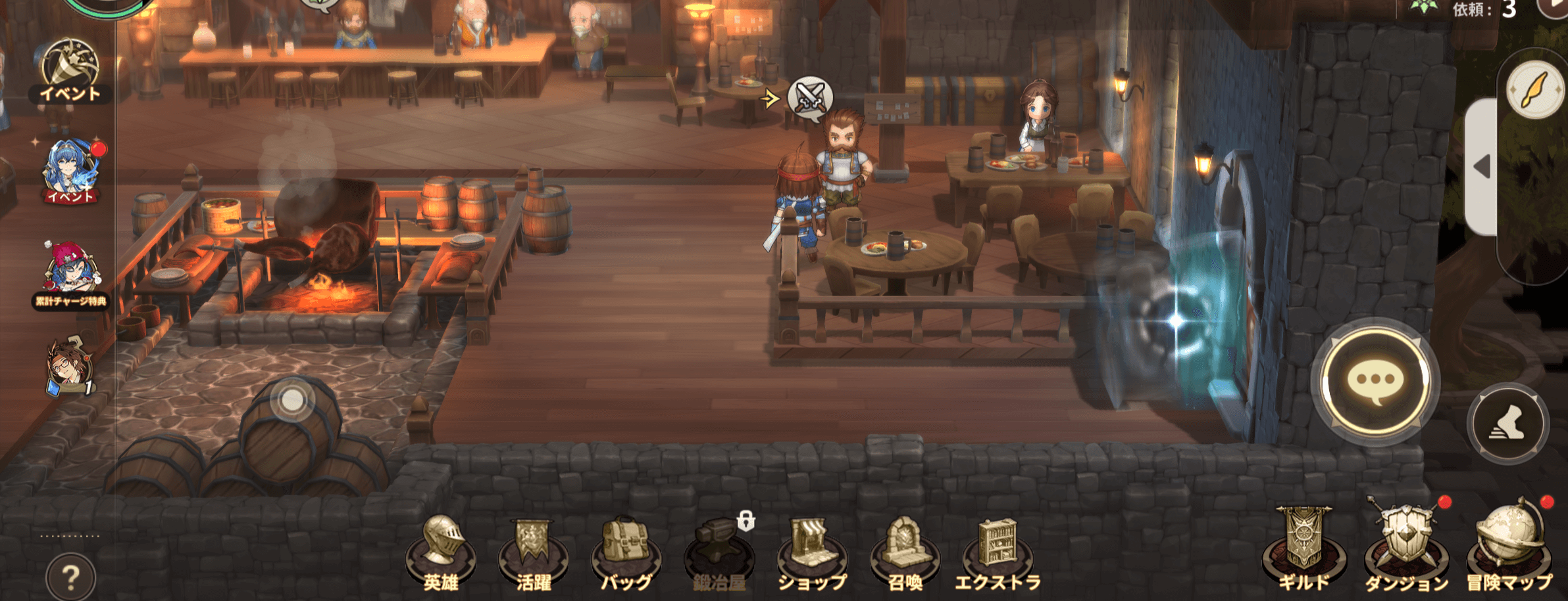 放置報酬で冒険ポイント入手できます。オンライン時でもオフライン時でも報酬がたまります。短時間で10分ごとに受け取ることができます。