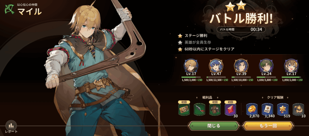放置報酬で装備を入手できます。ただし、ドロップ率が低く、装備もそんなに強くないため、装備のために放置報酬を受け取るのはおススメしません。