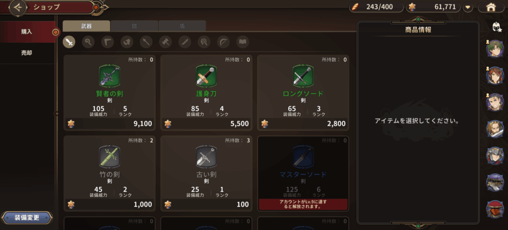 冒険ポイントを使用して装備を入手することができます。ロビーや各街に装備を売っているところがあり、そこで冒険ポイントと交換できます。冒険ポイントと交換することで装備が確実に入手できます。