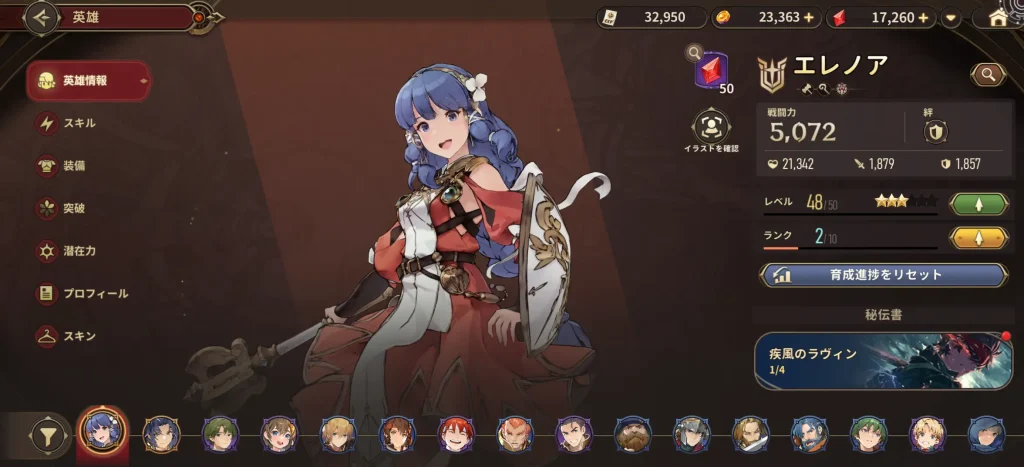 ランクアップを行うには英雄の最低レベルが決まっています。