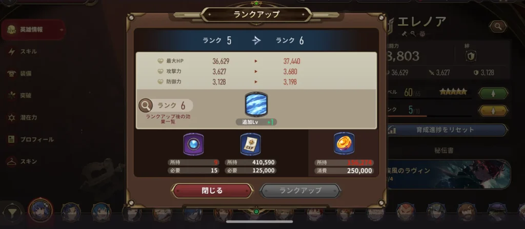 中級ランクアップ宝石は英雄のランクアップに使用します。英雄のランクを6以上に上げる場合は初級ランクアップ宝石ではなく中級ランクアップ宝石になります。