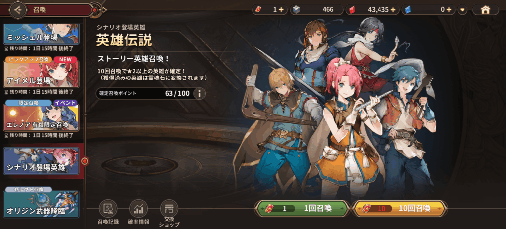 英雄召喚チケットは英雄召喚で使用します。英雄には凸要素があるため、英雄召喚チケットがあるときは回していくのがおすすめです。