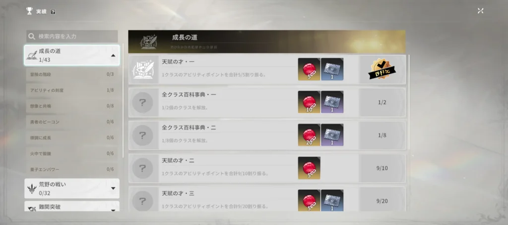 実績でローズジェムを入手できます。実績はビックリマークがついていると、受け取ることができます。