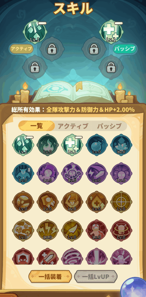 主人公のスキルをセットすることで戦闘力を強化できます。アクティブスキルトパッシブスキルがあり、それぞれ3つまで装着することが可能です。