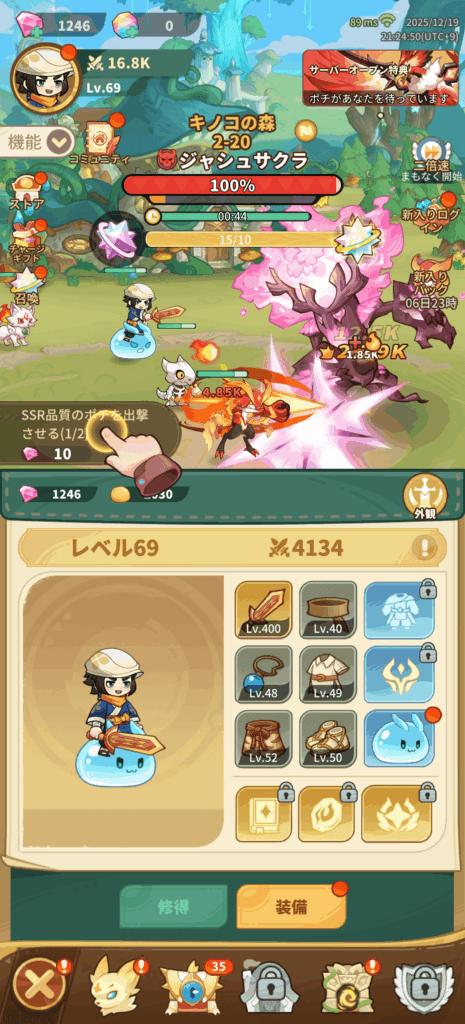 ポチや主人公のレベルを上げることで戦闘力を強化できます。ポチのレベルは主人公ト同等のレベルまでしかあげれないため、先に主人公のレベルを上げておく必要があります。