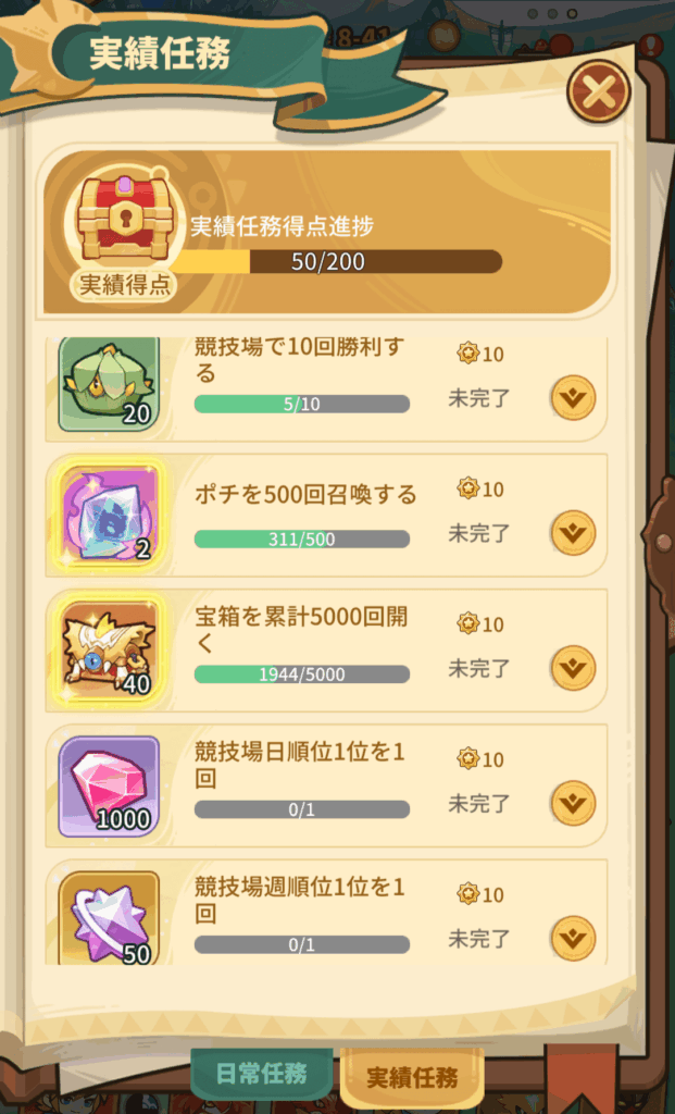 実績任務で宝箱を入手できます。実績任務はゲームを進めていくことでクリアできていることが多いので、報酬の受け取り忘れが無いようにしましょう。
