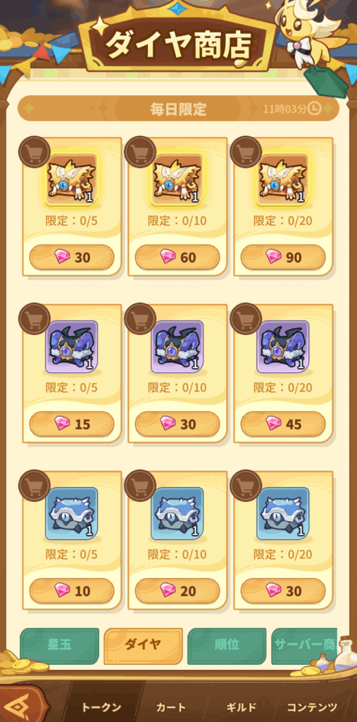 ダイヤ商店で宝箱を入手できます。ダイヤ商店はダイヤとアイテムを交換できますが、ダイヤの使い道が複数あるため、交換には慎重になる必要があります。