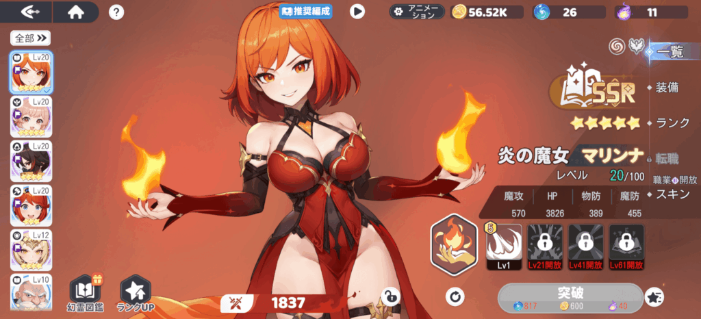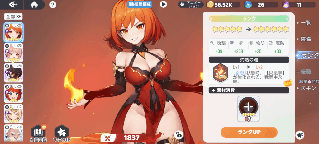 ランクを上げることでキャラの戦力を大幅に強化することができます。ランクを上げるには同等のキャラが必要になります。