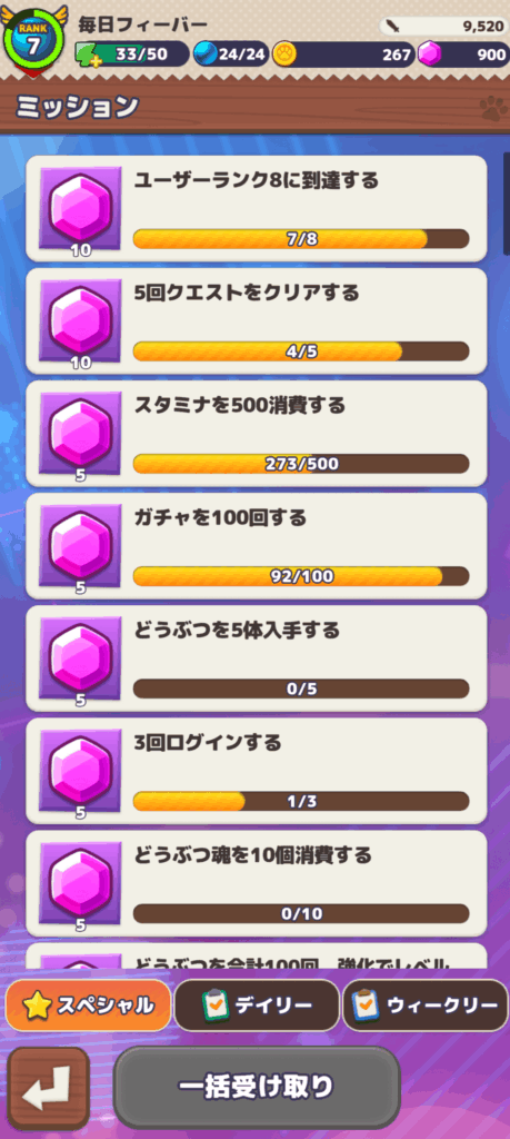 ジェムはミッションを行うことで入手できます。このミッションはゲームを進めると勝手にクリアしていくものが多いです。