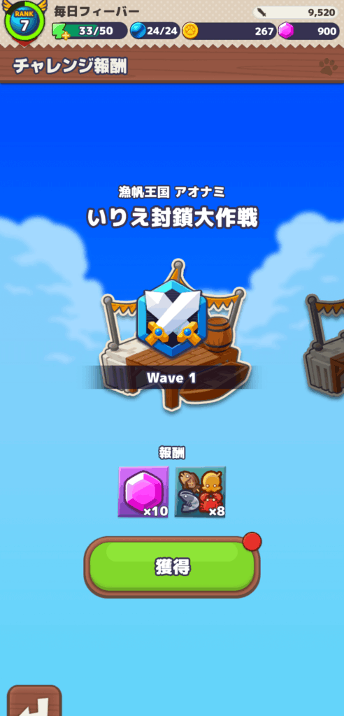 チャレンジ報酬でジェムを入手できます。チャレンジ報酬はステージのクリア矢ウェーブごとにジェムを入手できます。