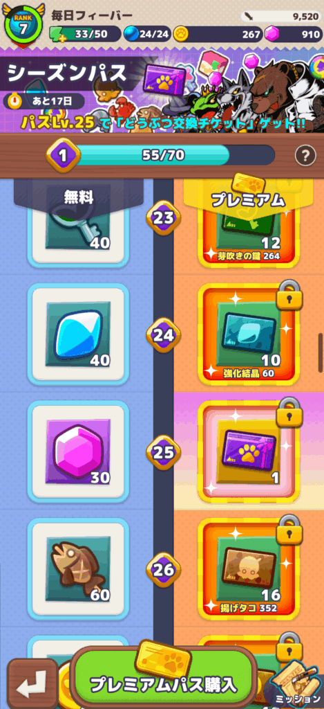 シーズンパスでジェムを入手できます。シーズンパスの報酬はジェムがメインではないのでもらえる数は少ないです。