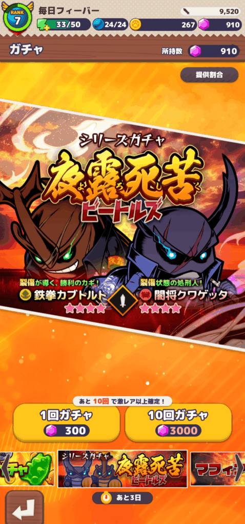 ガチャでジェムを使用します。1回300個、10回3000回使用します。ガチャはイベントもあります。