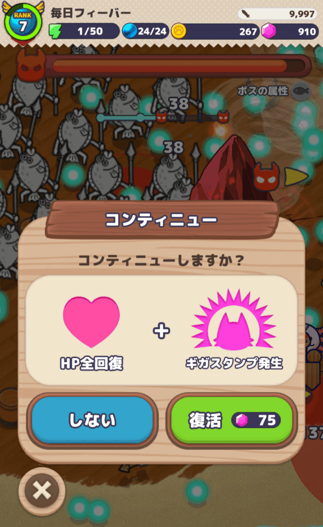 コンテニューを行うときにジェムを使用します。1回コンテニューするのに、75個必要とします。
