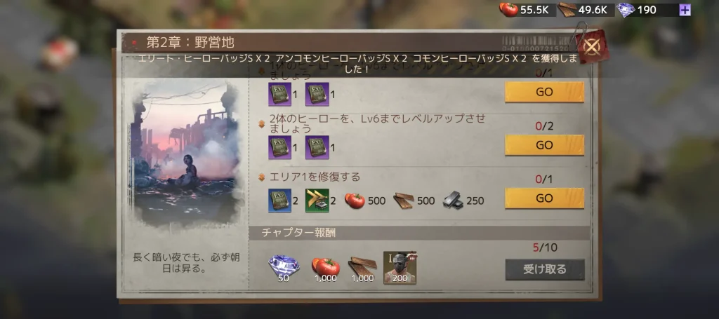 チャプターミッションを進めることでジェムを入手できます。チャプターミッションはゲームのストーリーや進捗に直接影響します。