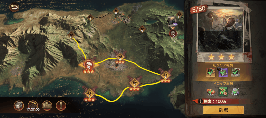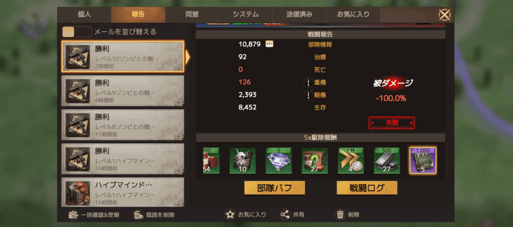 ゾンビ討伐を行うことで戦闘マニュアルを入手できます。行動がある間は常にゾンビとの戦闘も可能なので戦闘マニュアルを詰めるときにはおススメです。