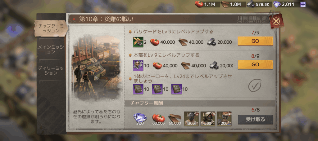 チャプターミッションで戦闘マニュアルを入手できます。チャプターミッションはゲームの進捗を示してくれるミッションです。ゲームのストーリーも進むので進める必要があります。