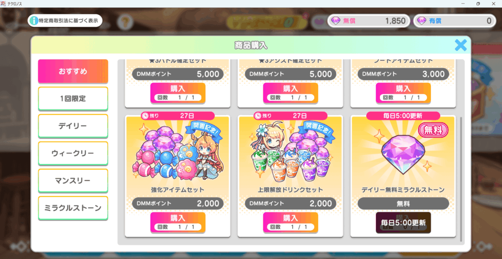 無料配布のミラクルストーンを入手しましょう。ショップで毎日10個配布されており、受け取ることができます。シリアルコードも場合によってはミラクルストーンを入手できる可能性があります。