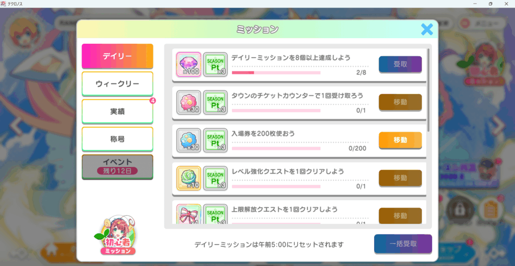 デイリーミッションでミラクルストーンを入手することができます。デイリーミッションの一部でしか入手できませんが、毎日やっておきましょう。