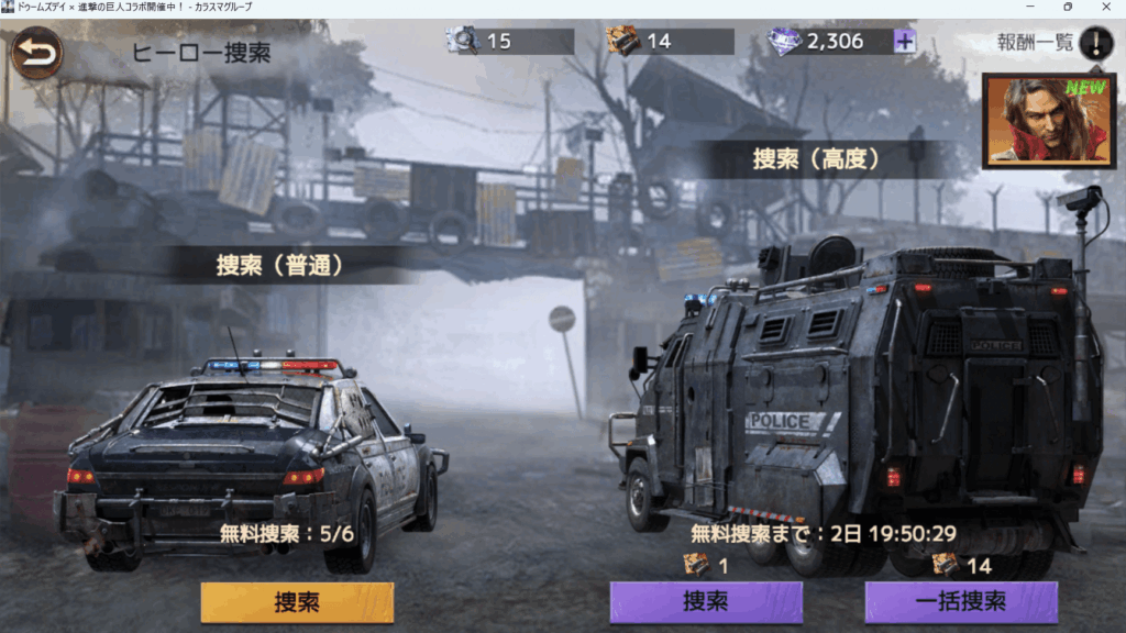 警察署で捜索(ガチャ)を行いましょう。毎日通常は5回~(警察署レベルによって異なる)を引くことができます。無料が複数回ある場合は続けて引くことができず、時間を空ける必要があります。