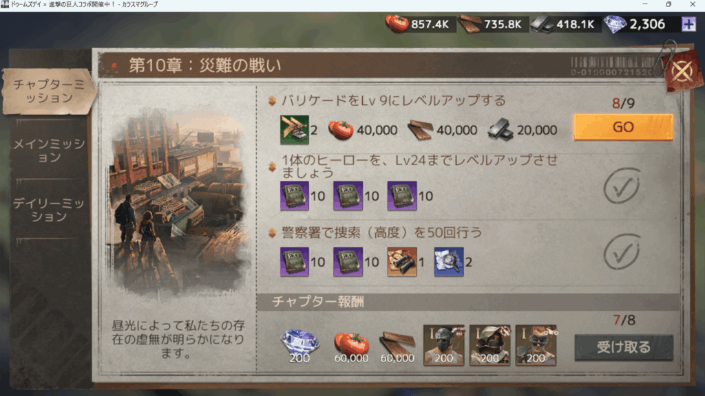 ミッションを毎日進めておきましょう。毎日デイリーミッションをクリアしていくと良いです。それと同時にチャプターミッションも進めていくようにしましょう。