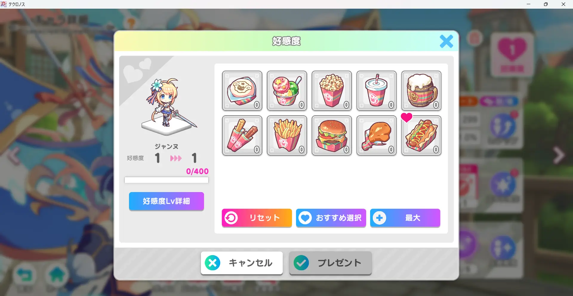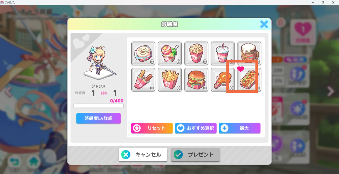 食料であれば、どのアイテムでも好感度を上げることが可能です。好感度をとりあえず上げたい場合は全て上げると良いです。