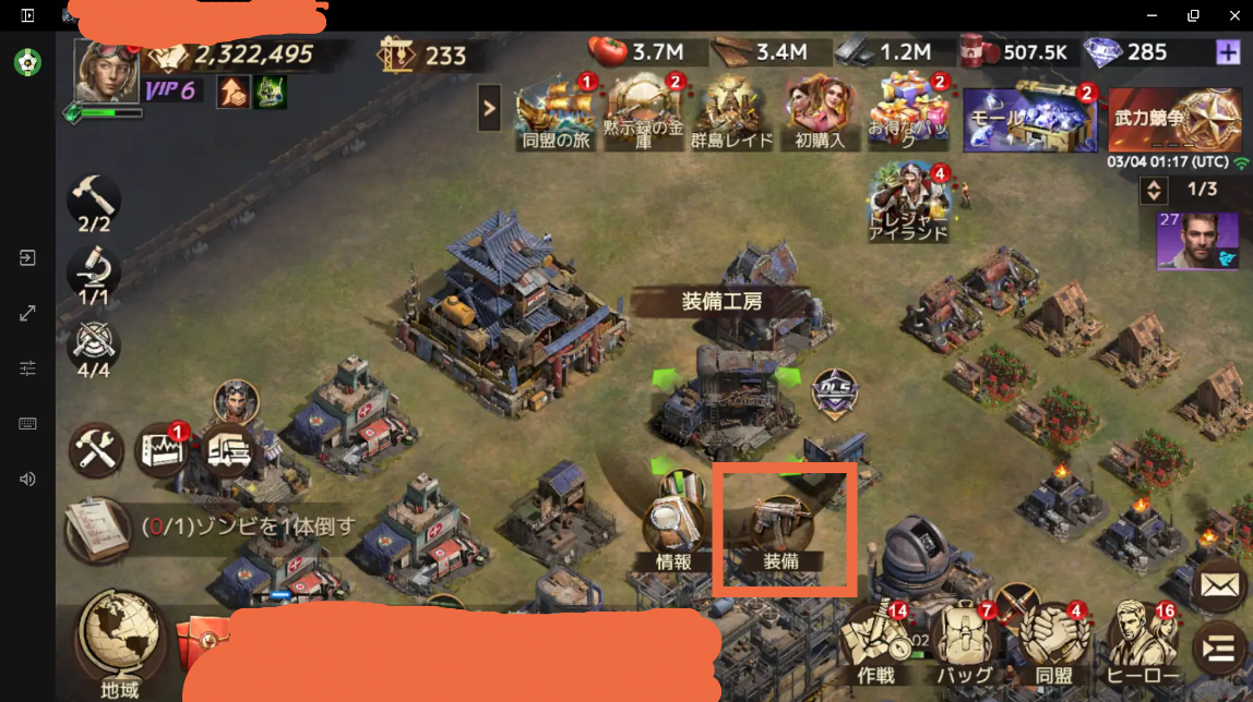 装備工房を建てることで装備を作ることができます。装備工房は本部レベル10いくと開放され建てれるようになります。