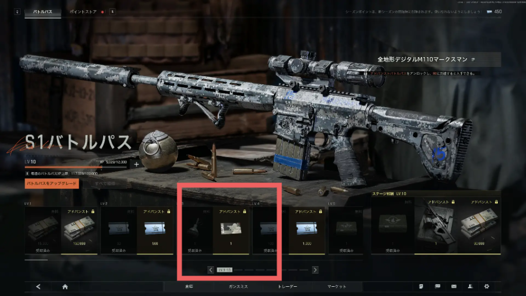 バトルパスで引換券を入手することが可能です。バトルパスはタスクや出撃などの経験値でレベルが上がります。