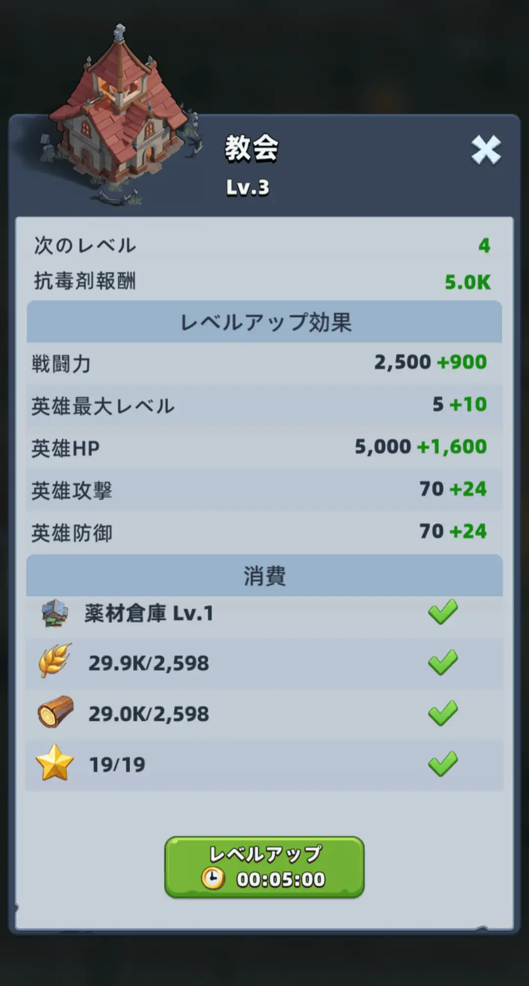 【ラストアサムライ】ランクの上げ方とメリット 2026 3/12 ゲーム攻略wiki ラストアサムライ:プレイグ攻略 2026年3月12日 URLをコピーしました! 目次ランクの上げ方 ①教会内に入る②銅貨を集める③病室のレベルを上げる ランク上げのメリット 教会のレベルを上げれるようになる ランクを上げることによって教会のレベルを上げれるようになります。教会は最低ランクが決まっています。 >>>教会のレベル上げに必要な資源 ゲーム攻略wiki ラストアサムライ:プレイグ攻略 よかったらシェアしてね! URLをコピーしました! URLをコピーしました! 関連記事 【ラストアサムライ】薬草園のレベル上げに必要な資源 2026年3月12日 【Timberborn】フォークテイル・アイアンティースの違い 2026年3月12日 【ストーンエイジ】ラスキーのスキルと評価 2026年3月12日 【ストーンエイジ】ルーマのスキルと評価 2026年3月11日 【ストーンエイジ】バーラのスキルと評価 2026年3月11日 【ストーンエイジ】モミのスキルと評価 2026年3月11日 【ストーンエイジ】ベルディのスキルと評価 2026年3月11日 【ストーンエイジ】ピテクスのスキルと評価 2026年3月11日 マイクラ攻略Timberborn攻略テクロノス攻略ストーンエイジ放置冒険ドゥームズデイ攻略ダークウォーサバイバル攻略攻略タイトルページに飛ぶ