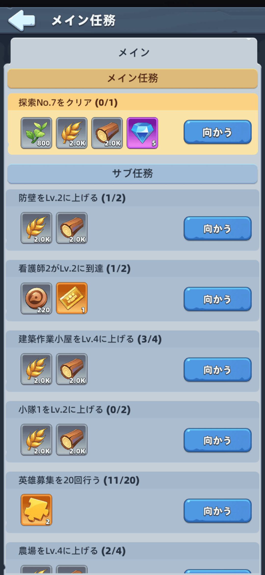 メイン任務でダイヤを入手できます。メイン任務はチュートリアル後にゲームを進める為に必要なミッションになります。