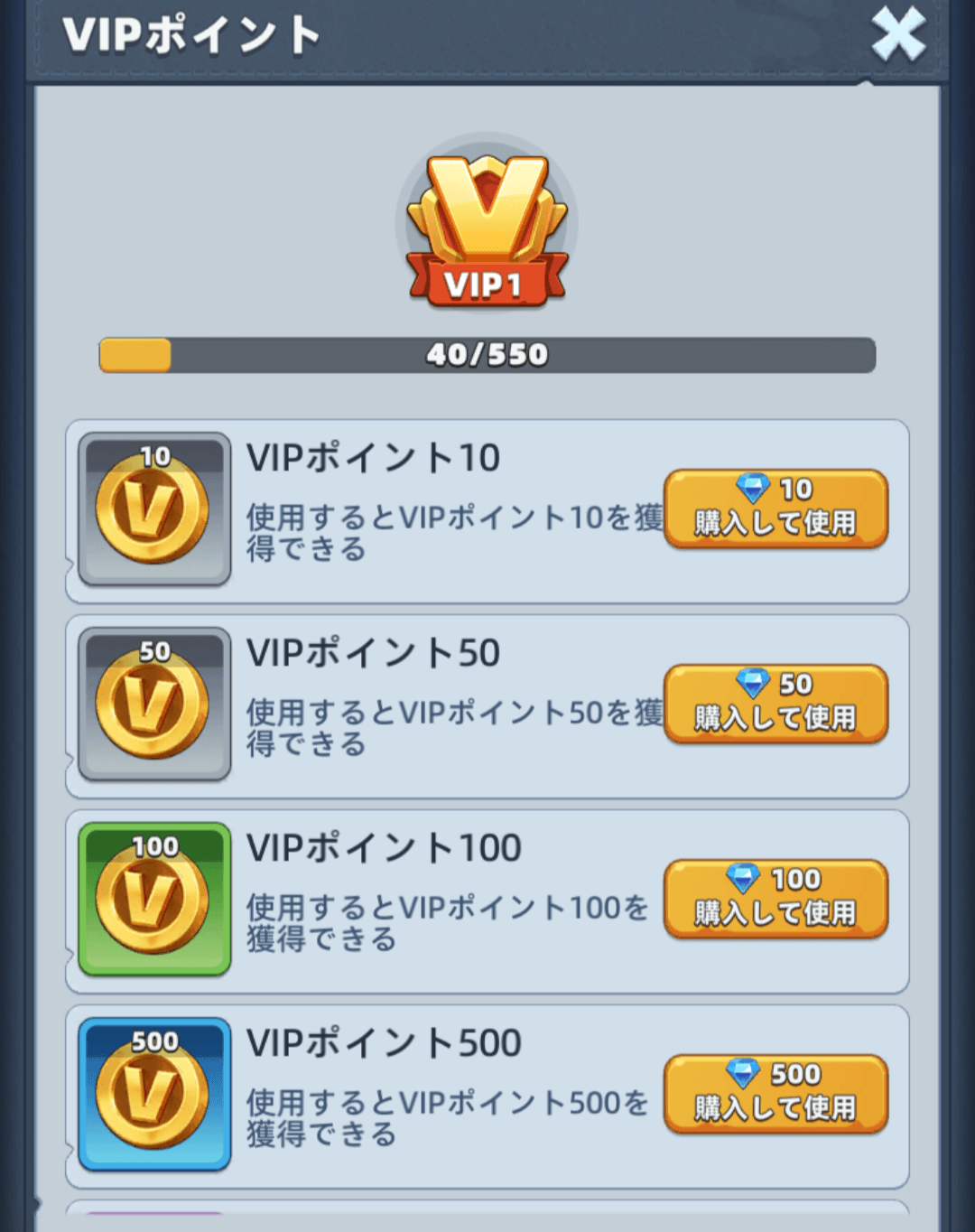 VIポイントの交換でダイヤを使用します。VIPポイントを上げれば生産や建設にメリットがあります。