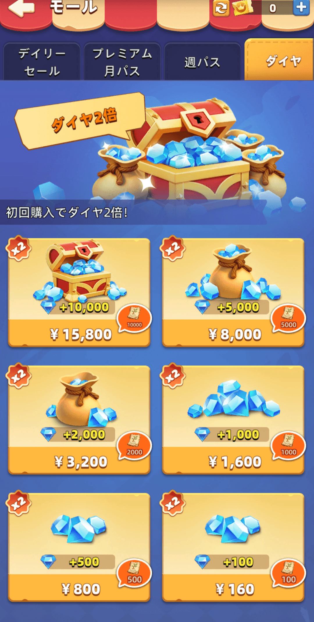 課金でダイヤを入手できます。ダイヤをすぐに欲しい場合は課金をしましょう。他のアイテムも一緒になっているパックもあります。